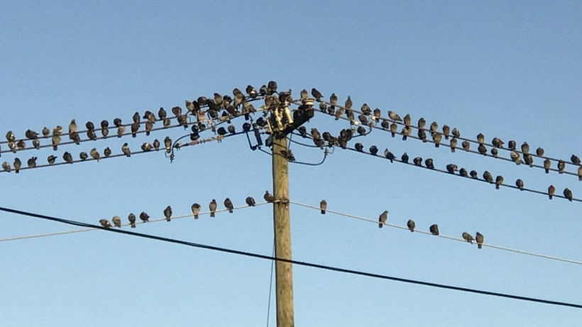Happy Halloween! Today’s featured image was both spooky and unexpected. An enormous flock of birds was my view when I bought my morning coffee.  A perfect Halloween image looking just like a scene out of Alfred Hitchcock’s The Birds.
