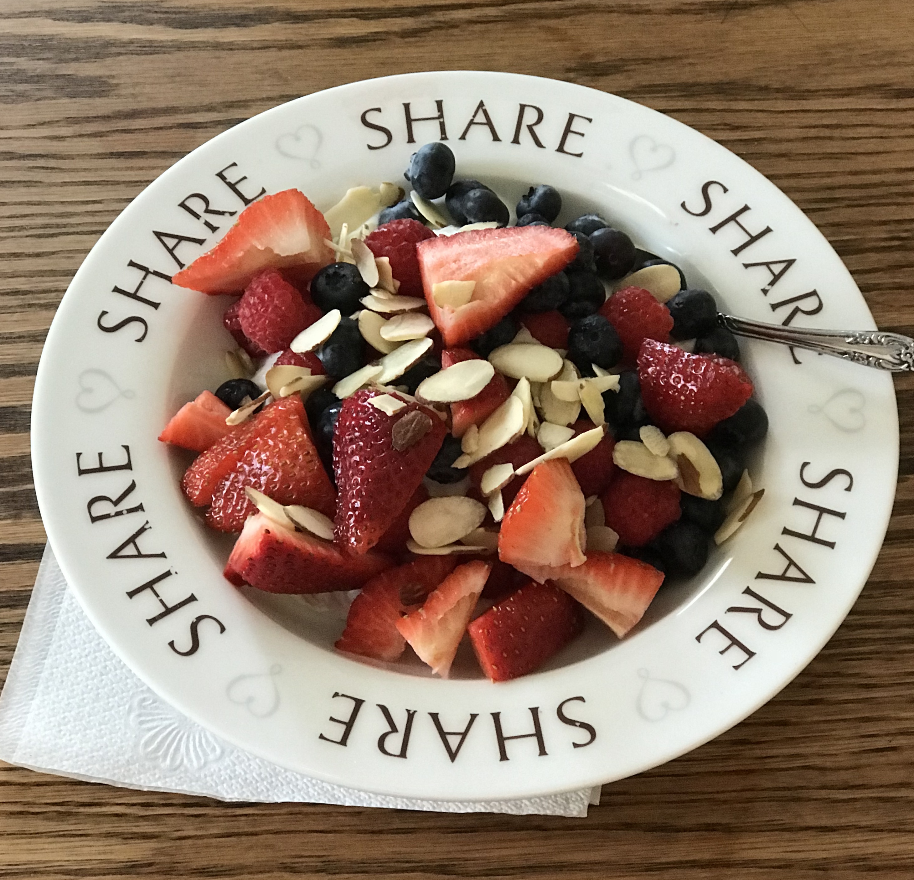 IMG_8767 1sp Greek yogurt, berries, and 9g slivered alomonds Share this: Click to share on X (Opens in new window) X Click to share on Facebook (Opens in new window) Facebook Like Loading...