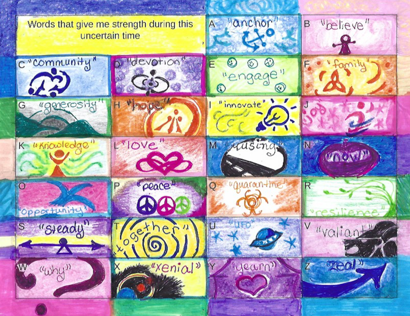 Thanks to Shelley who is a member of the Stanford CT/ Greenlawn NY WW Zoom group who made a suggestion to write a list of positive words for each letter of the alphabet. She inspired me to think about a list of words that make me feel strong and then I created this: