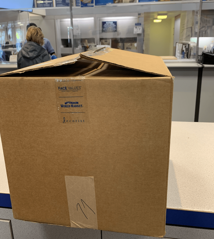 Mailing our son a box of goodies while he is away at university.