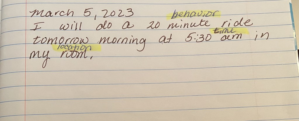 Simple habit tip: People who actually write down when, where, and how they will implement a new habit are much more likely to stick with it.